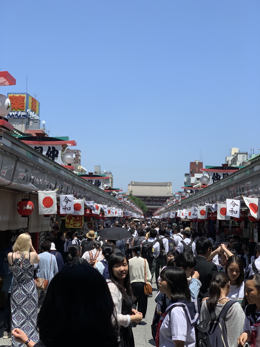 外国人観光客と学生の集団、、中店通るのもやっとでした