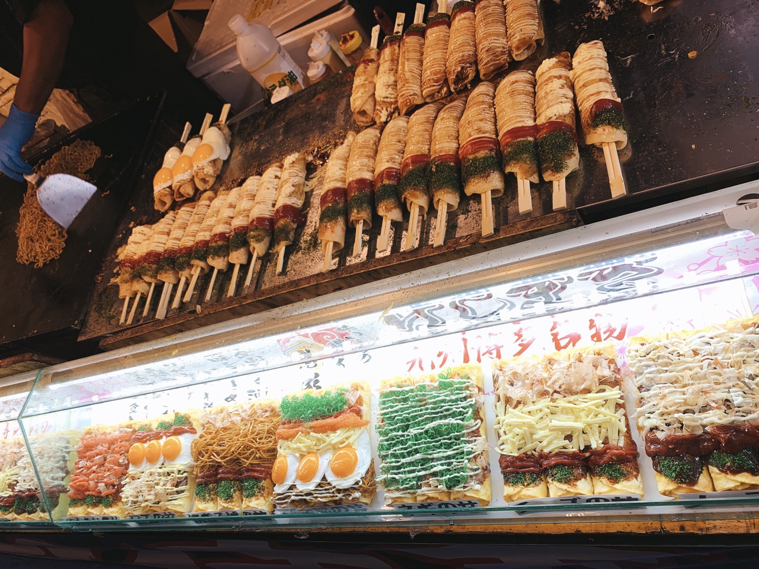はしまき!見栄えがとてもおいそうだったので、チーズ掛けとネギ掛けを頼みました✨