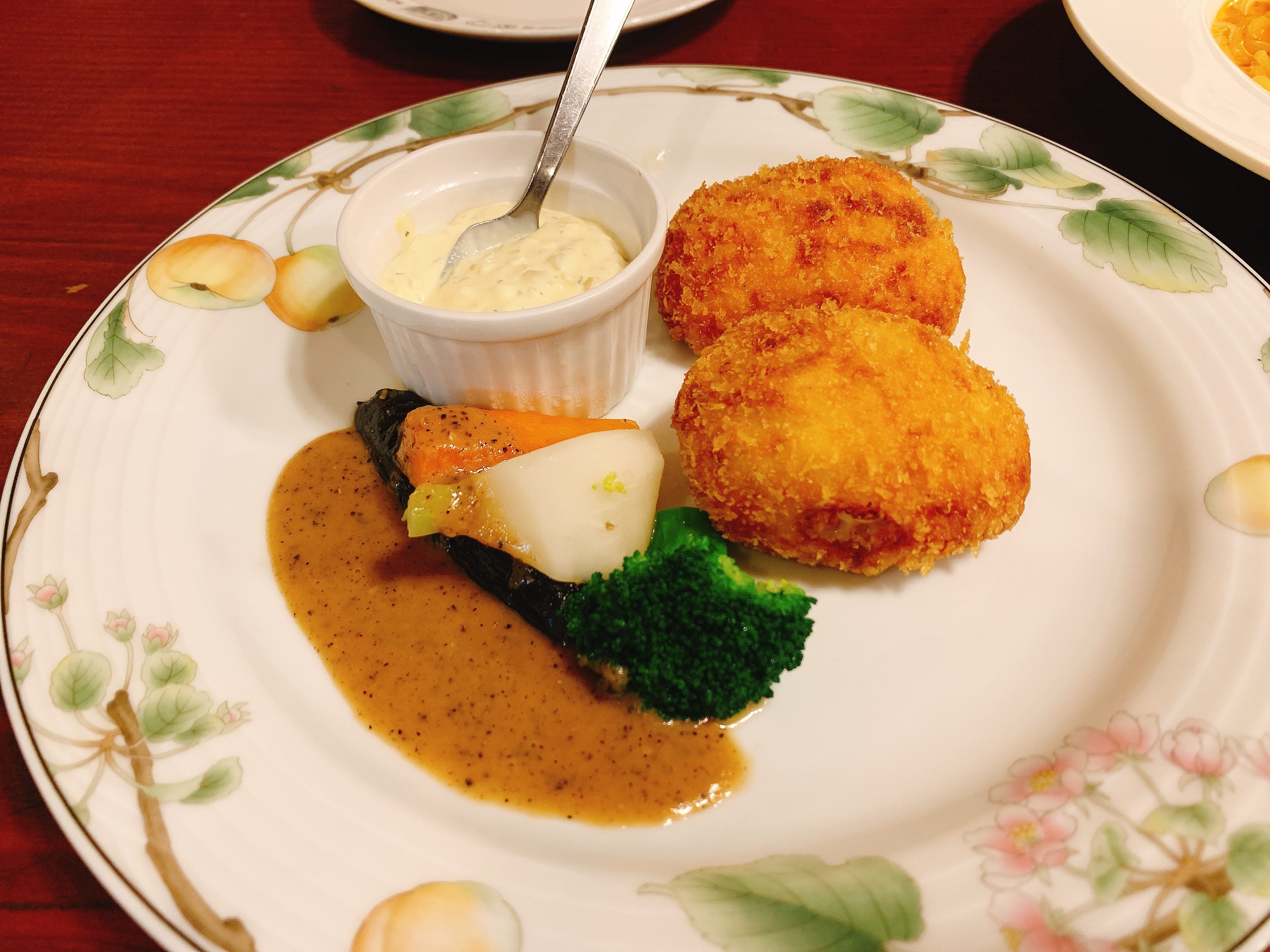 カニクリームコロッケとハンバーグステーキです!めちゃくちゃ美味しいです!